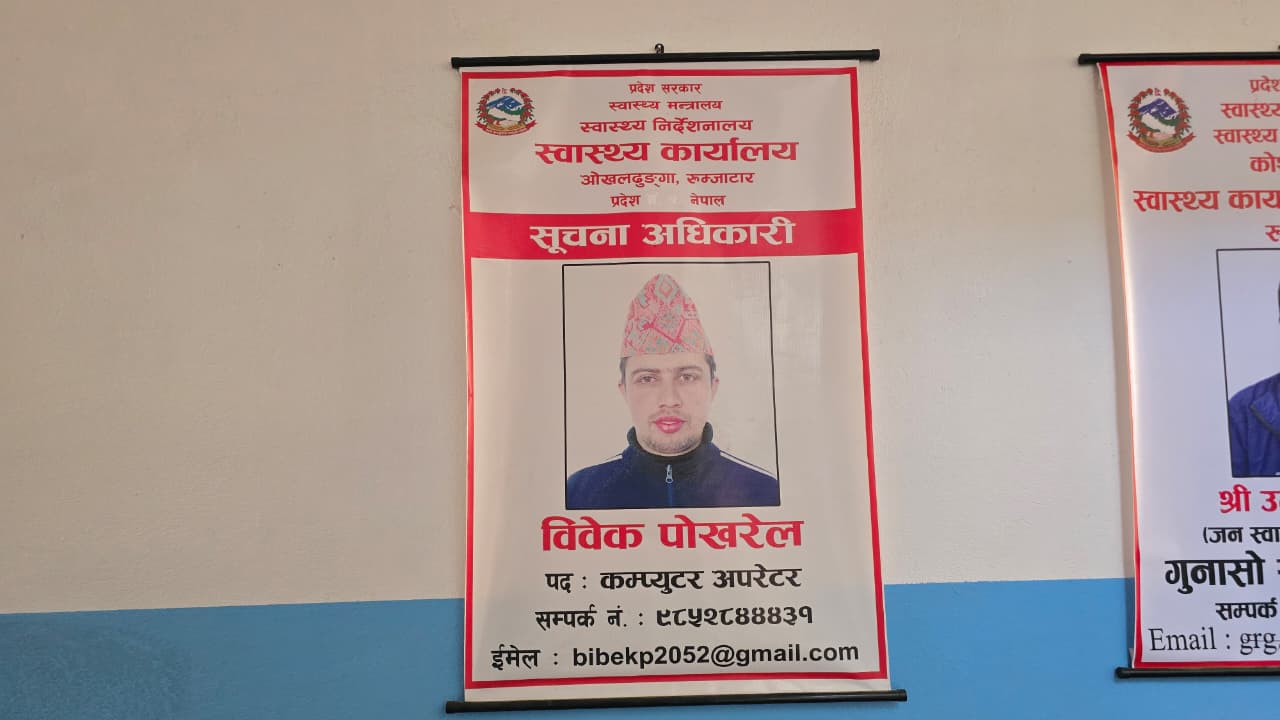सरकारी कार्यालयमा सूचना अधिकारीको जिम्मेवारी सामान्यतया स्थायी कर्मचारीलाई दिने प्रचलन र नियम छ । तर, स्वास्थ्य कार्यालय रुम्जाटारमा भने कार्यालयमै रहेका अन्य स्थायी कर्मचारीहरूलाई पाखा लगाउँदै करार म्याद सकिएका कर्मचारी विवेककुमार पोखरेललाई सूचना अधिकारीको महत्त्वपूर्ण जिम्मेवारी सुम्पिएको पाइएको छ ।
